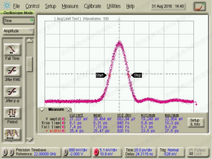 20GHz脈沖驅(qū)動(dòng),~5.2Vpp輸出 |