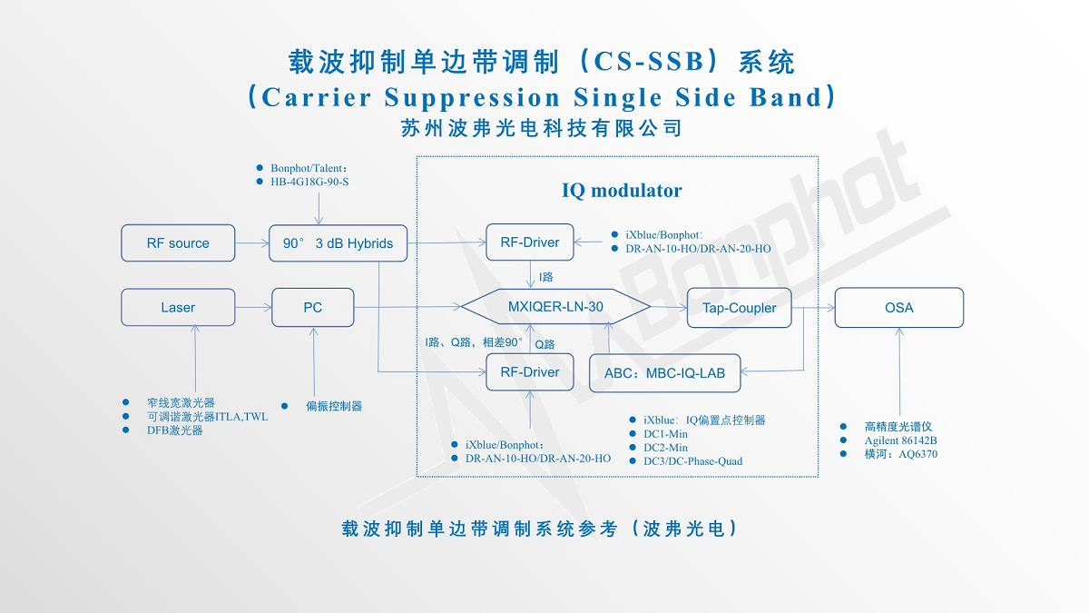 目前蘇州leyu集團(tuán)光電科技有限公司提供的基于法國iXblue公司的高消光比IQ調(diào)制器(MXIQER)、配合我們提供的驅(qū)動(DR-AN-10-HO/DR-AN-20-HO)以及偏置控制器(MBC-IQ-LAB-A1),可以實(shí)現(xiàn)>30dB(1000:1)載波抑制比,具有無可比擬的性能及優(yōu)勢。