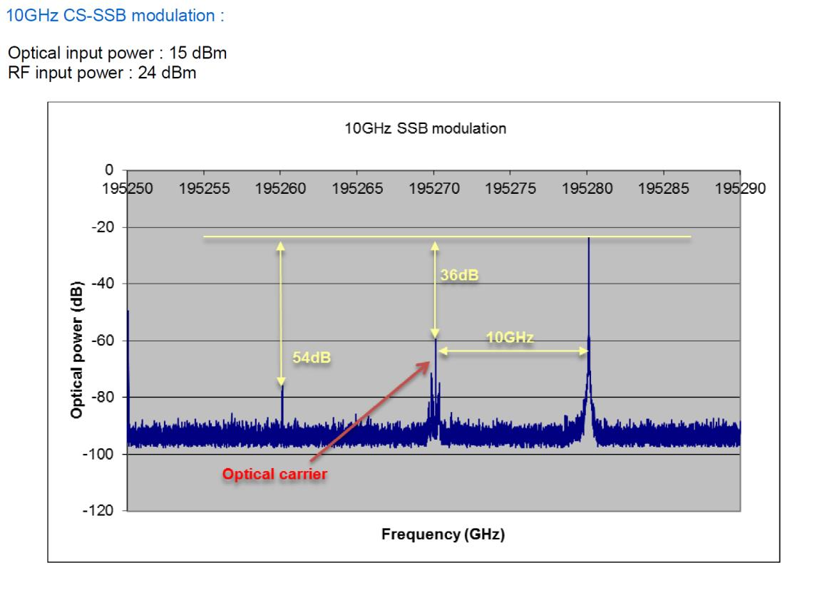 蘇州leyu集團(tuán)光電科技有限公司提供完整的載波抑制單邊帶調(diào)制(Carrier Suppression Single Side Band)方案。基于法國iXblue高消光比、高抑制比、高載波衰減的高性能鈮酸鋰IQ調(diào)制器(MXIQER-LN-30),提供高達(dá)32dB載波衰減、邊帶衰減,是目前市面上針對于單邊帶調(diào)制應(yīng)用性能最好的調(diào)制器之一。