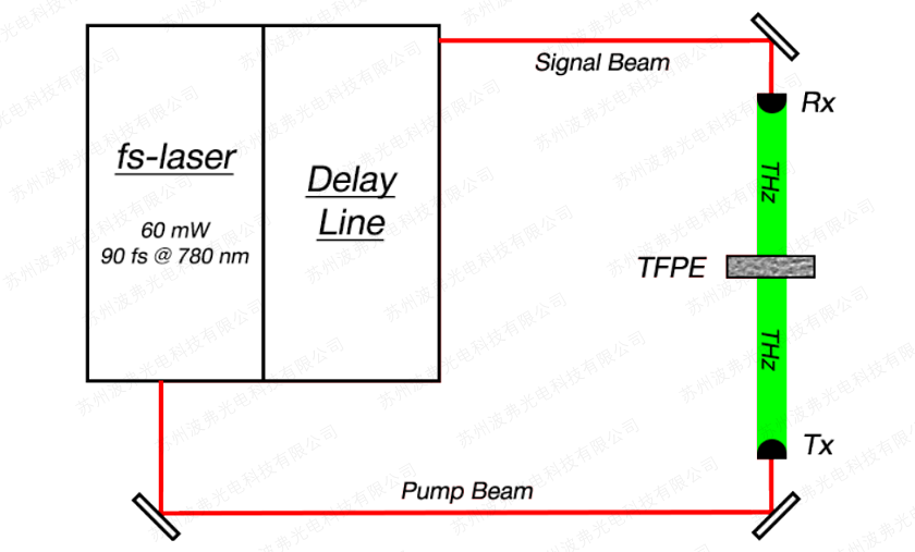 校準(zhǔn)TDS系統(tǒng)過程以精確測量樣品厚度是使用TFPE的一個例子。 實(shí)驗(yàn)裝置如圖1所示。1.
